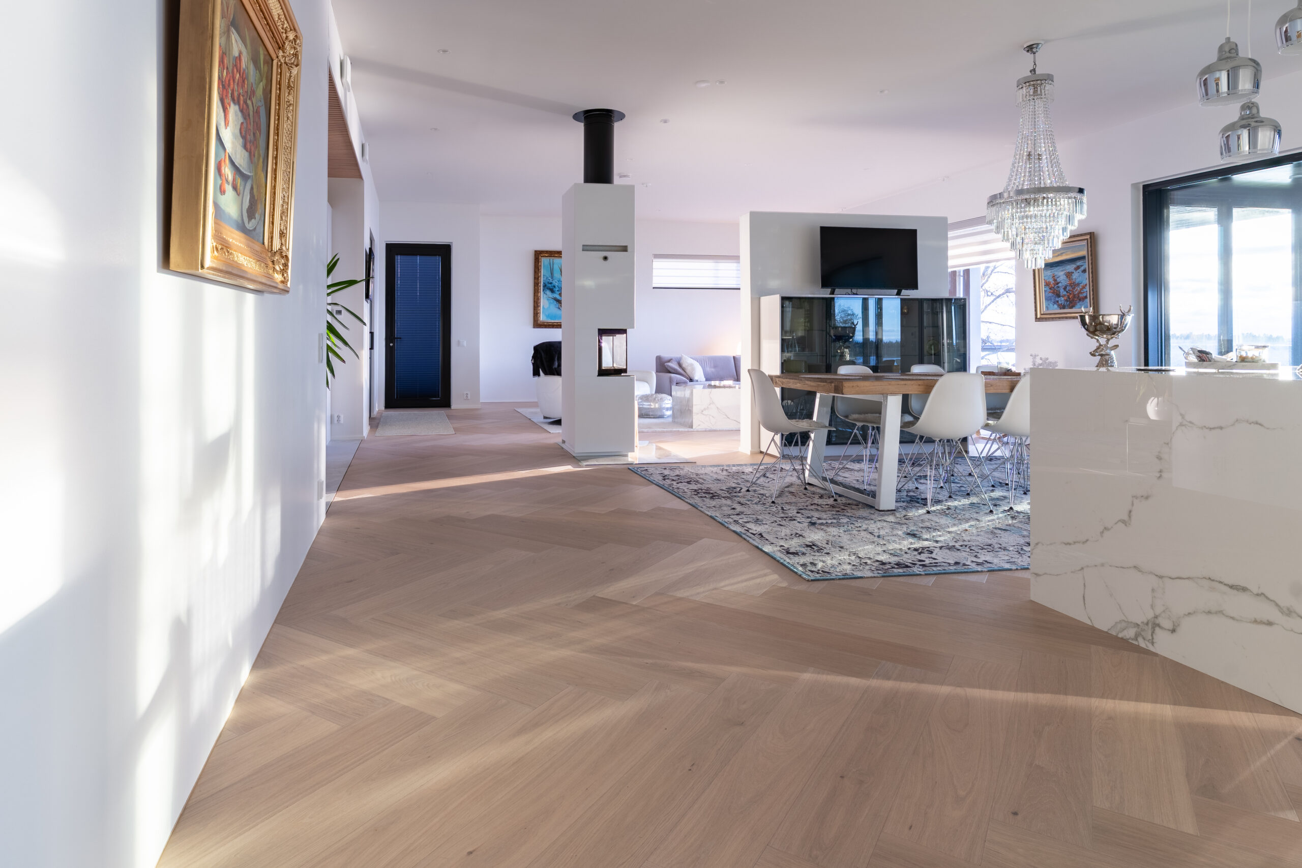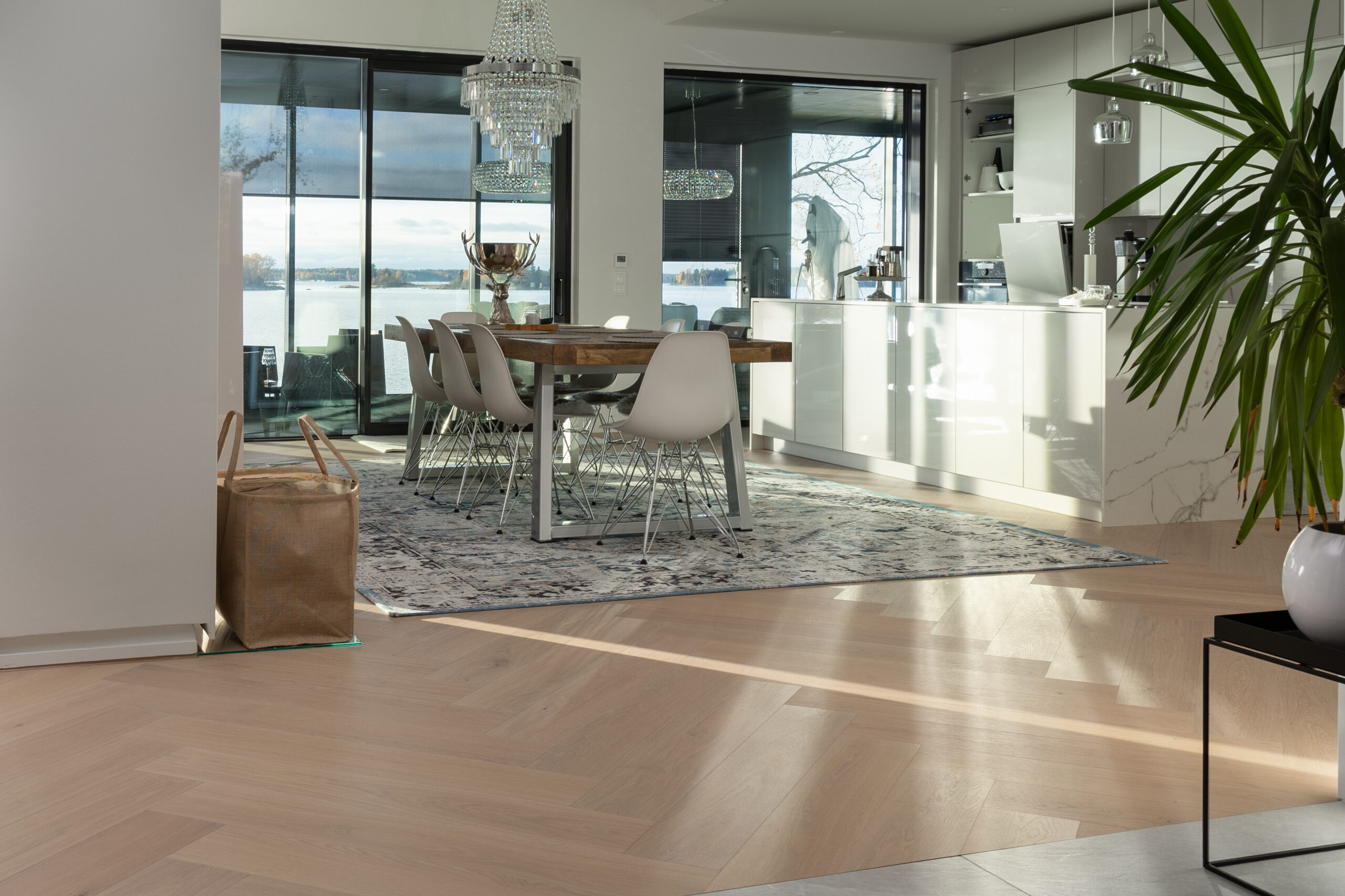 Aito tammesta tehty Trinity -kalanruotoparketti on hengittävä ja lämmin lattia joka kestää kodissasi sukupolvelta toiselle. Luonnollisella öljyvahakäsittelyllä tuomme esiin tammen kauneuden ja syyrakenteen, jota on ihana koskettaa. Trinity -lattia korostaa kotisi yksilöllistä ilmettä, koska sen jokainen lauta on luonnon muovaama.