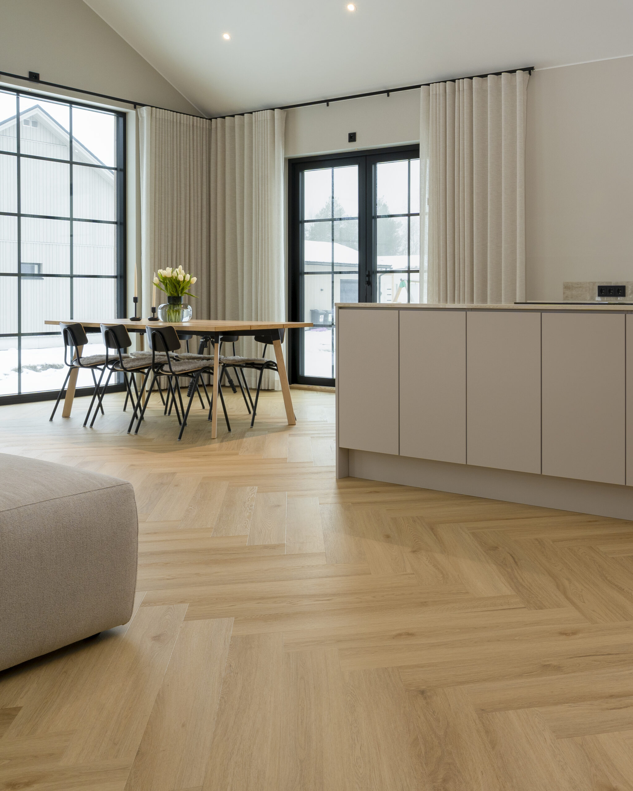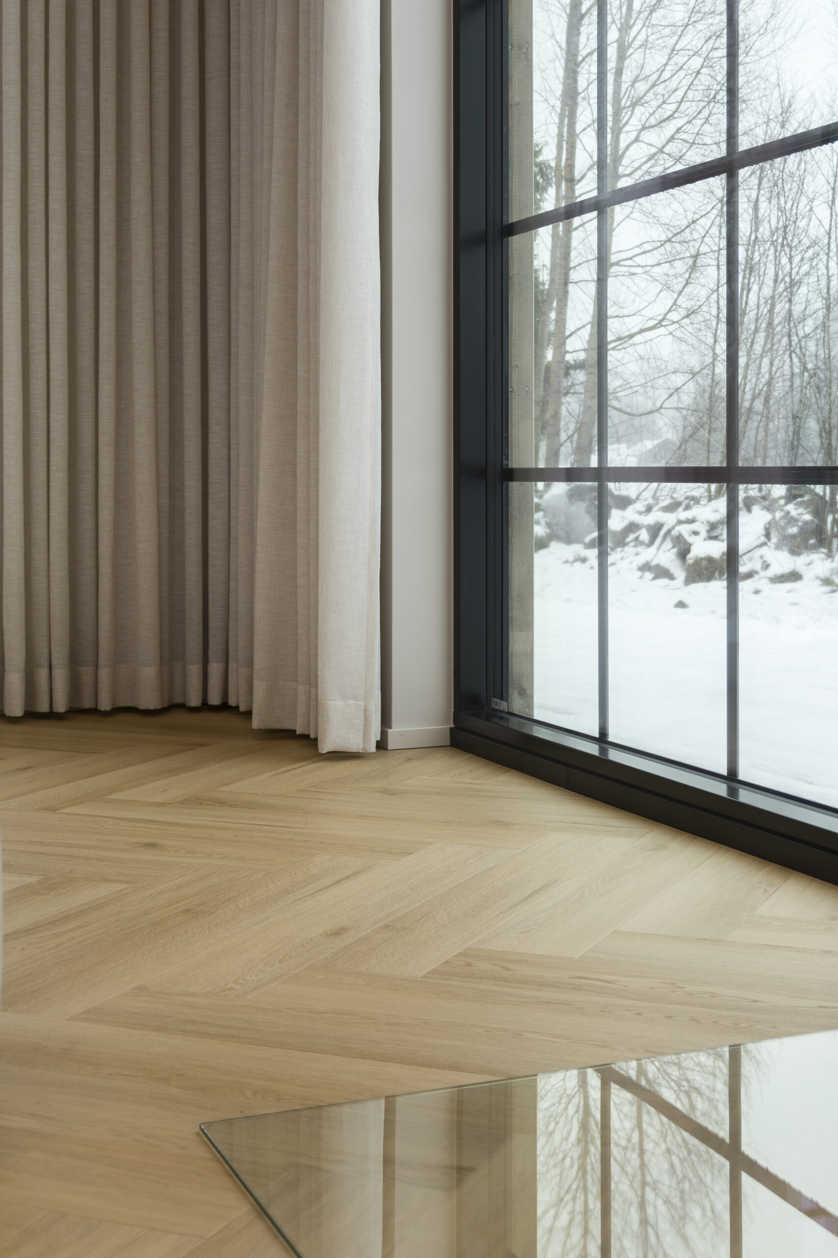 HARDER Herring kalanruoto -vinyylilattiassa käytämme kivikomposiittia vinyylilankun kantavana rakenteena. Kivikomposiitti, joka tunnetaan myös nimellä SPC-vinyyli, tekee lattiasta täysin vedenkestävän ja hyvin vähäeloisen.